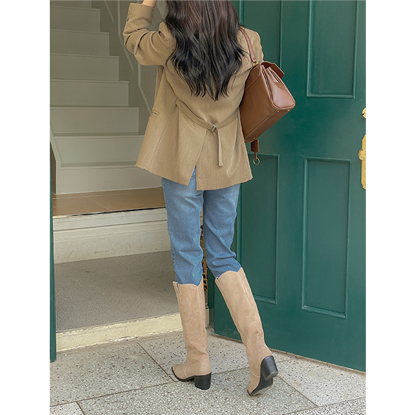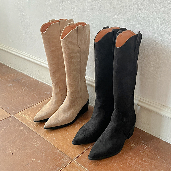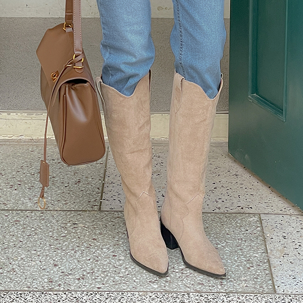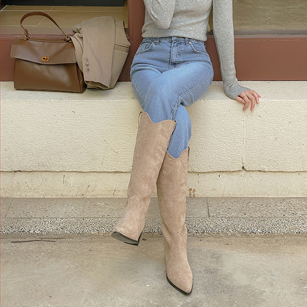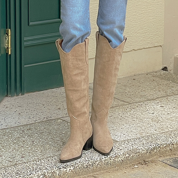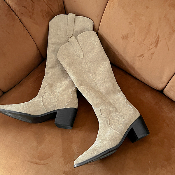 翻毛皮 西方风格 长款 靴子 高跟鞋