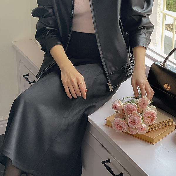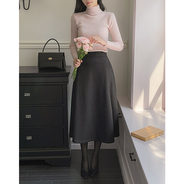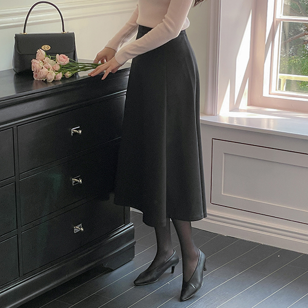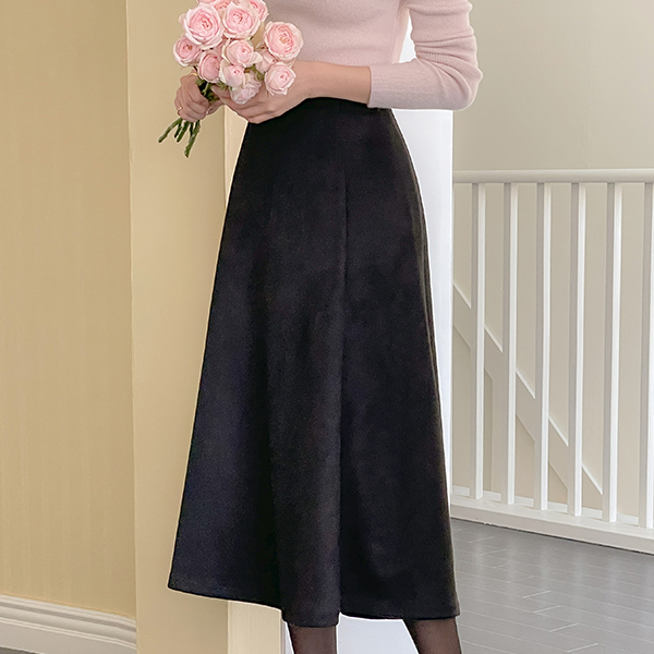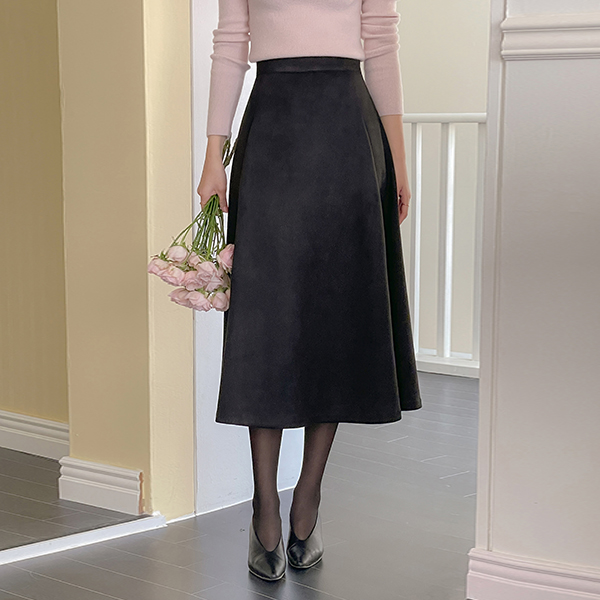 秋季 翻毛皮 喇叭 后侧松紧带 裙子