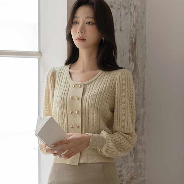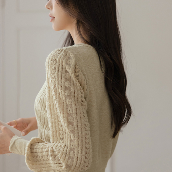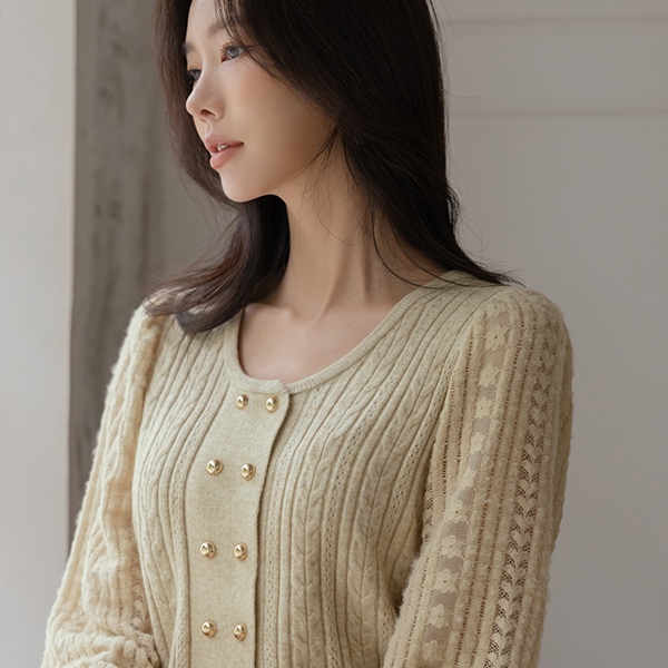 浪漫 蕾丝 点缀 双 扣子 针织衫 Ⅱ