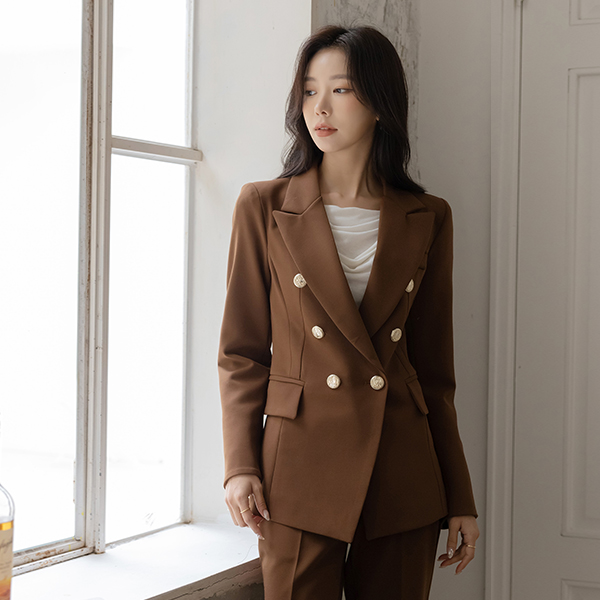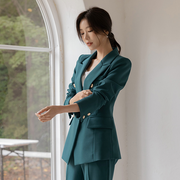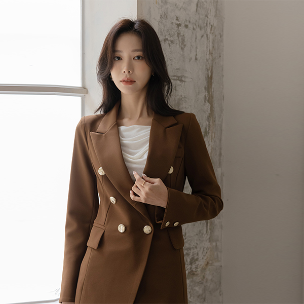 엘리샤 黄金 扣子 斯利姆 弹力 Set-up 夹克