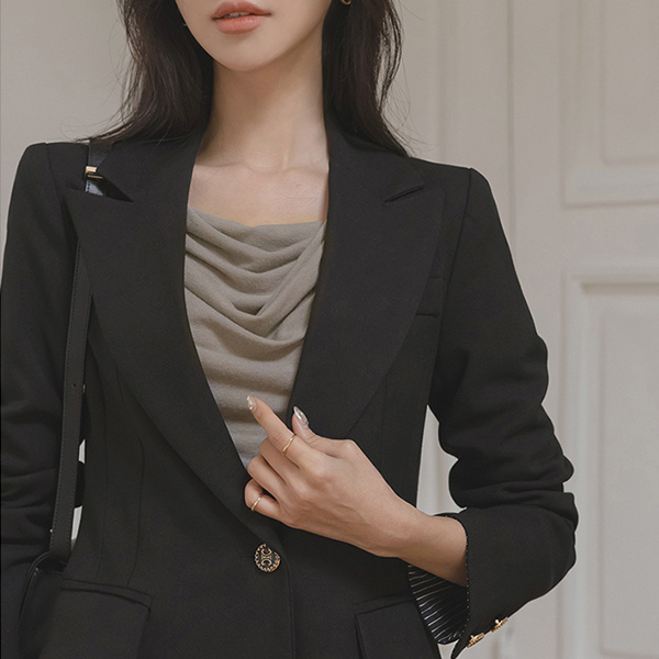 엘리샤 黄金 扣子 斯利姆 弹力 Set-up 夹克