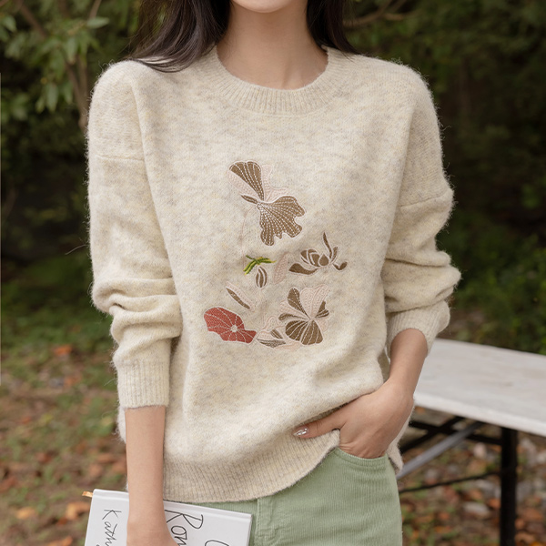 花纹 缂丝 点缀 羊毛 混合 针织衫