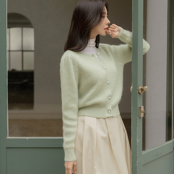 安哥拉 Macaron 颜色 珍珠 开衫