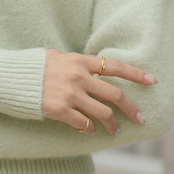 镶钻 分层 黄金 戒指