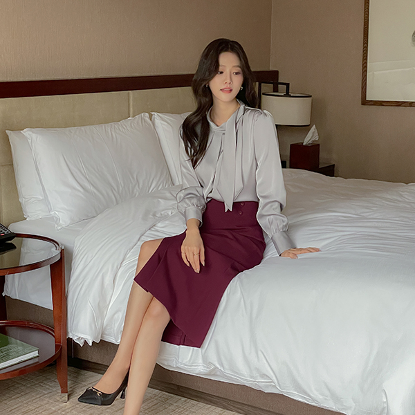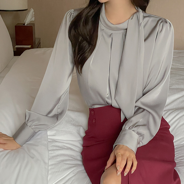 有光泽 围巾 细褶 罩衫