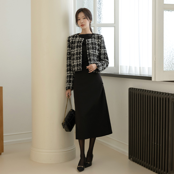 몸매 调整型 쫀득 半高领 褶皱 连衣裙