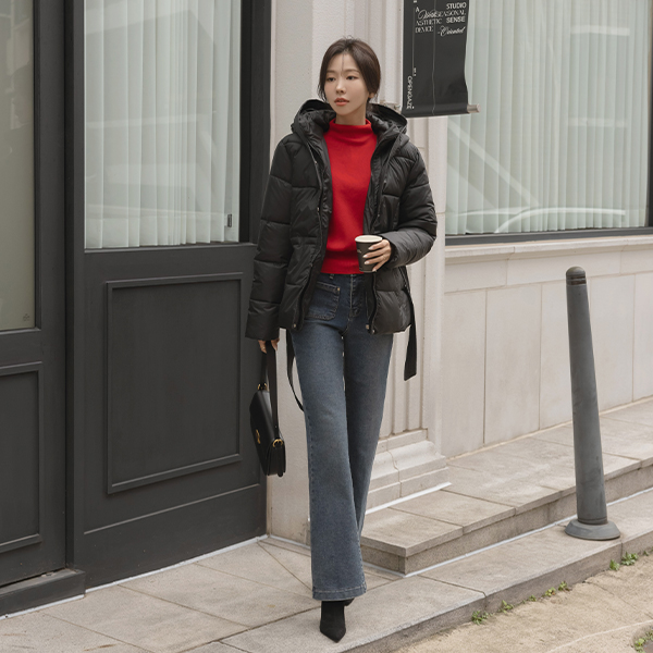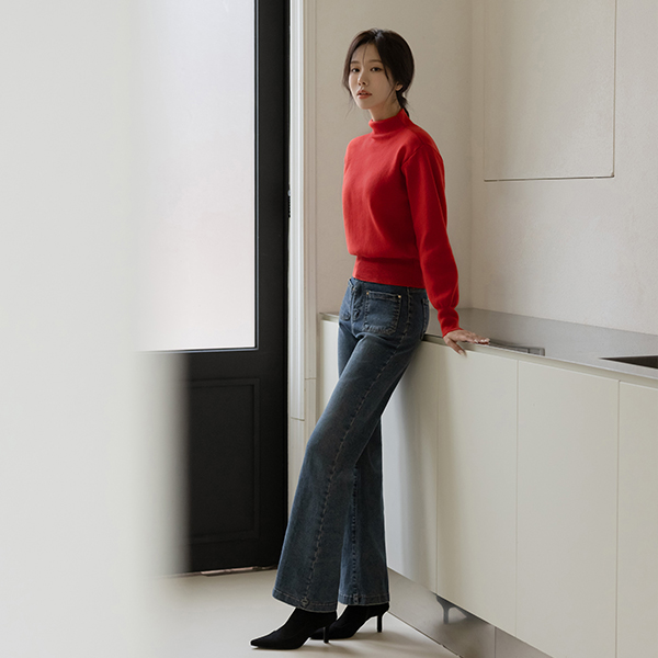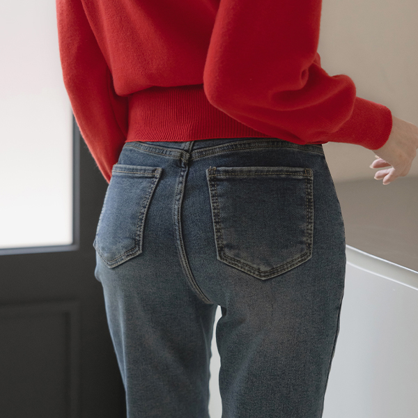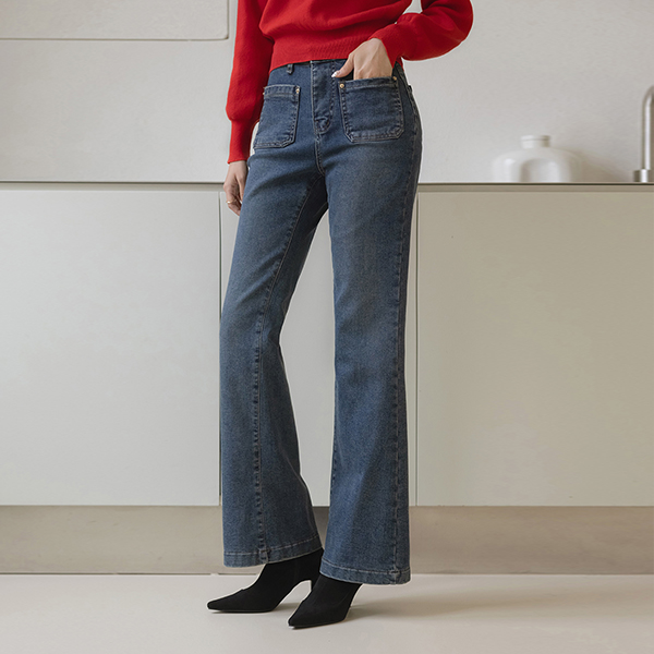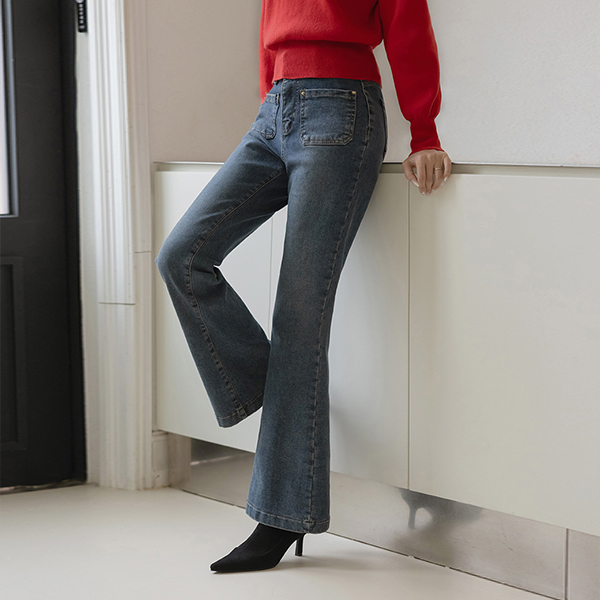 华丽 松紧带 拉绒 喇叭 牛仔色 裤子