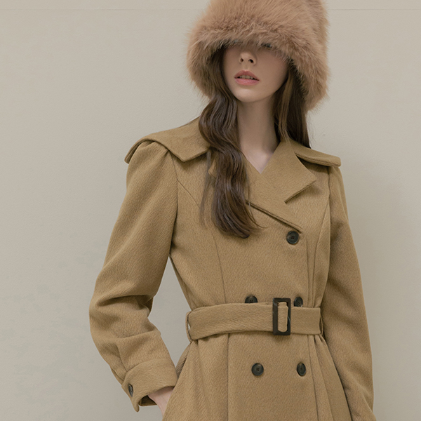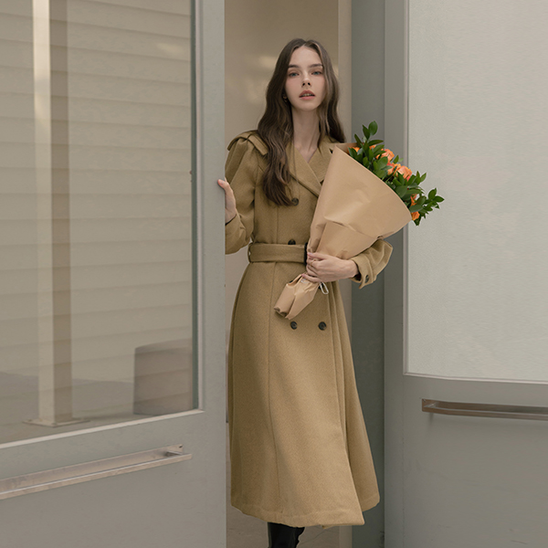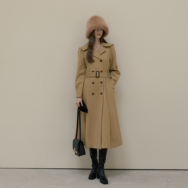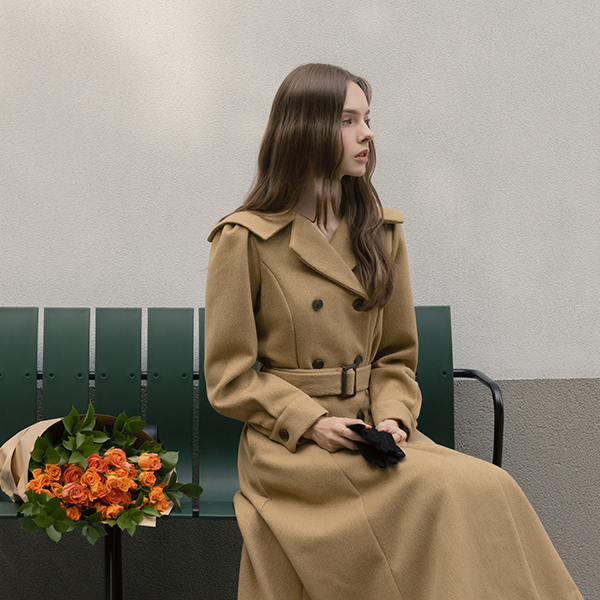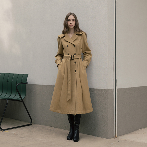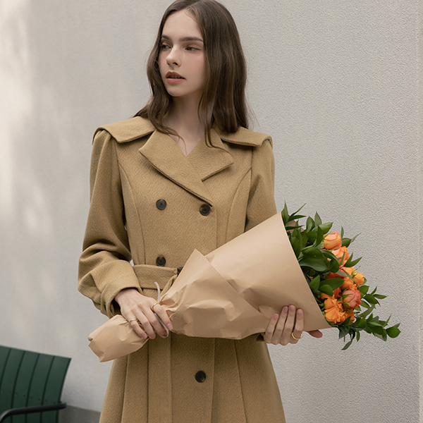 水手 领子 A字型 双 扣子 羊毛 连衣裙