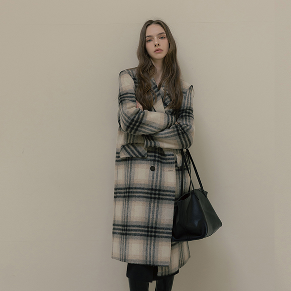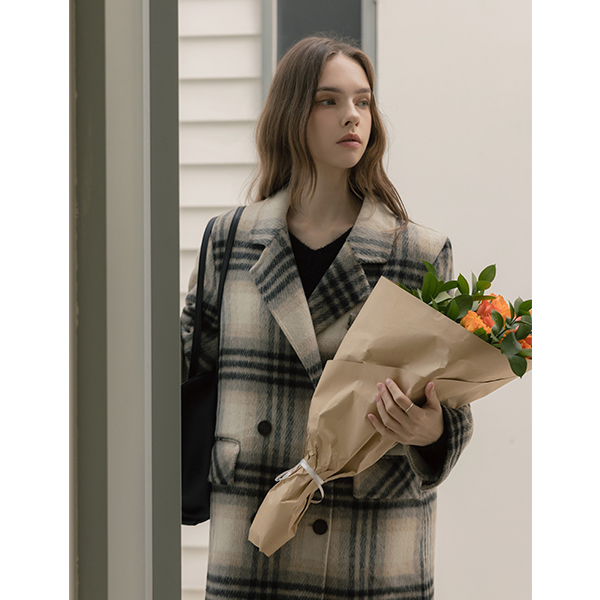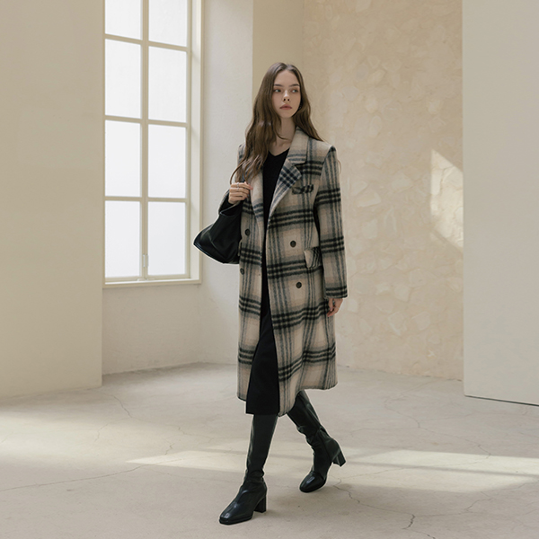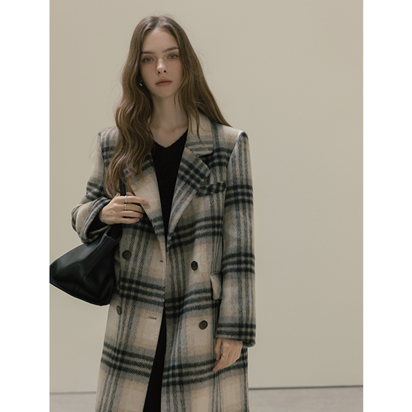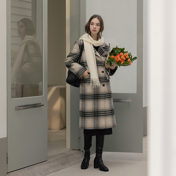 羊毛&羊绒 双 扣子 格子 长款 大衣