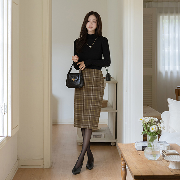 柔软的 羊毛 格子 H字型 Set-up 裙子