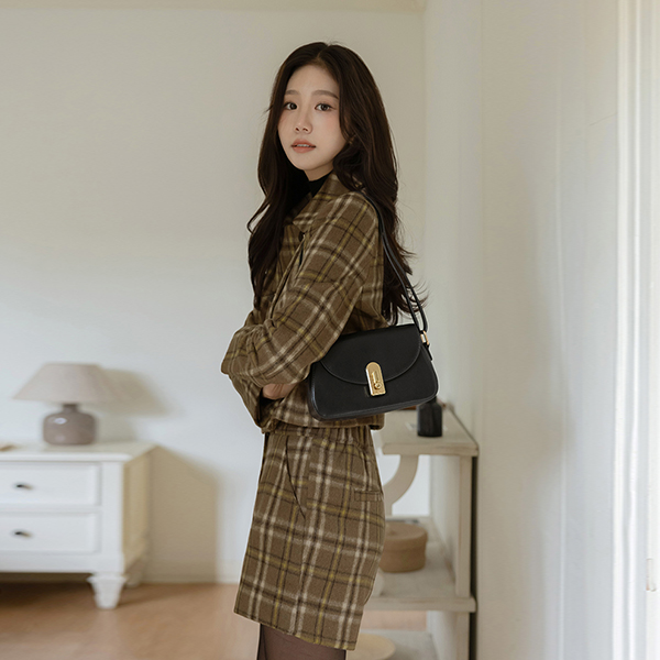 柔软的 羊毛 格子 H字型 Set-up 裙子