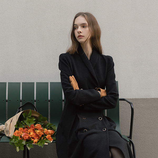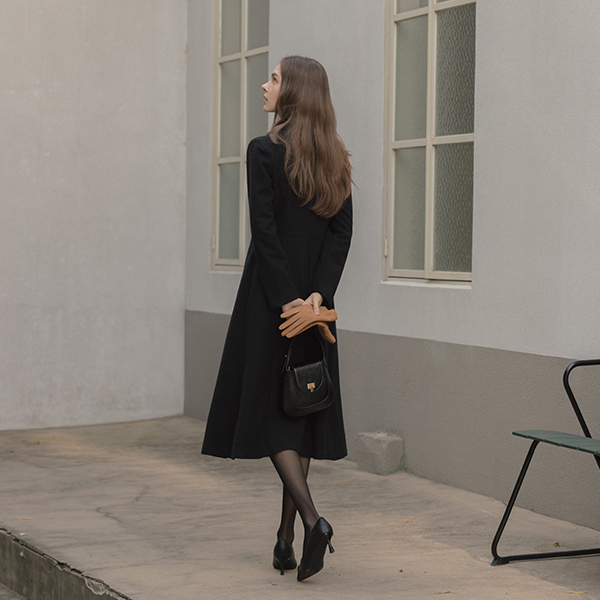 古典 披巾领 A字型 羊毛 粗呢 连衣裙