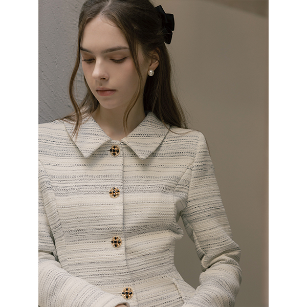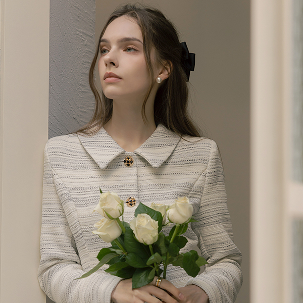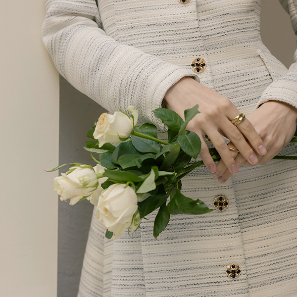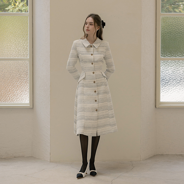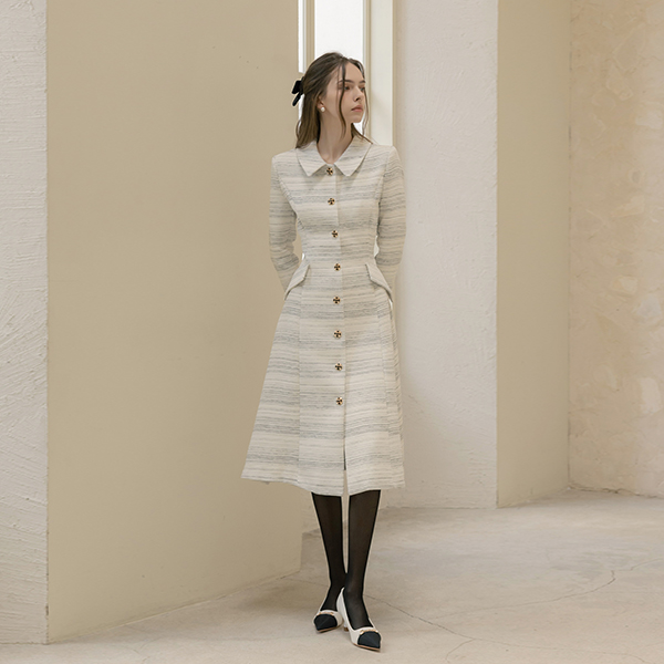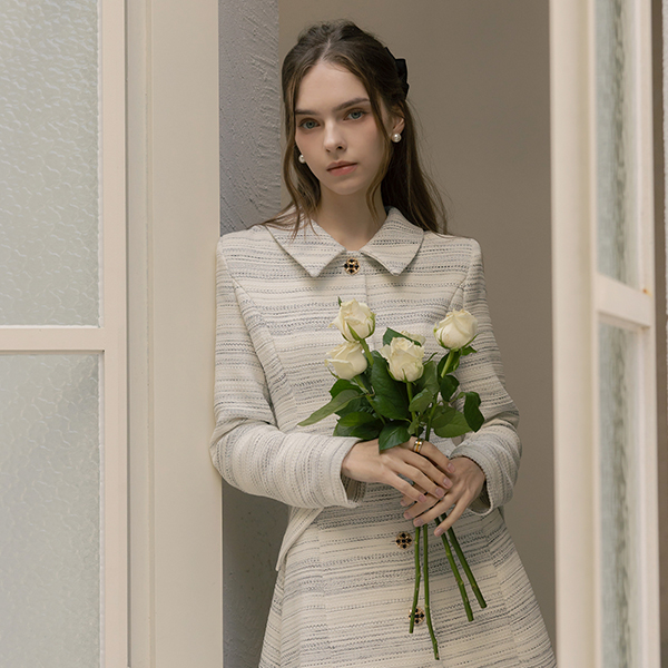 优雅 粗呢 宝石 A字型 连衣裙