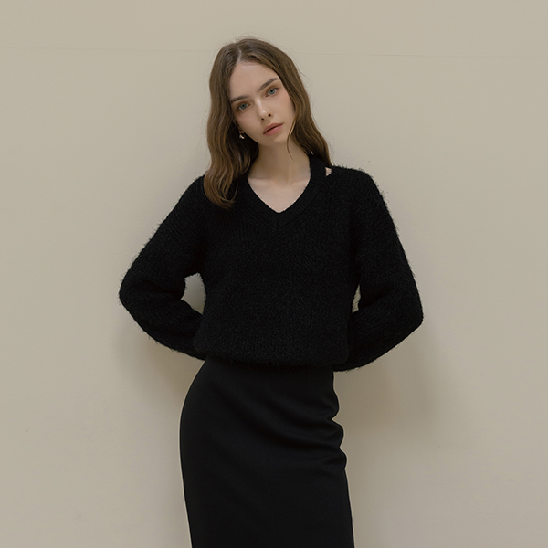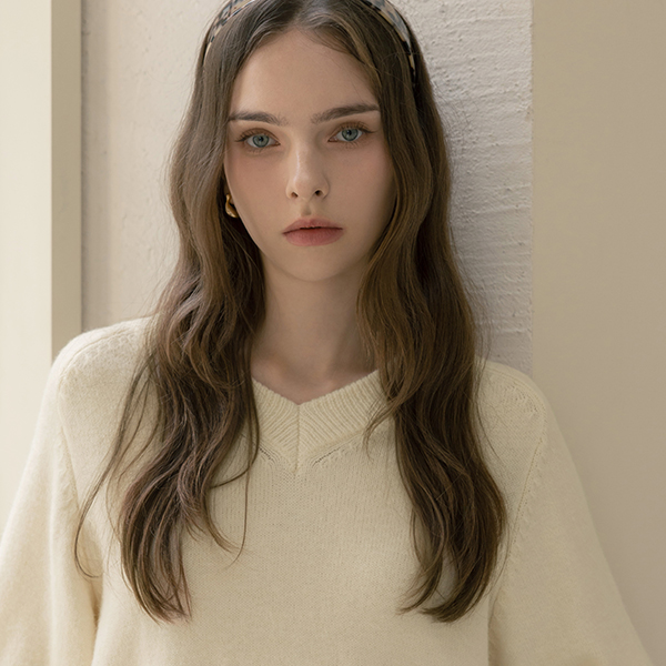 柔色 颜色 苗条 V领 羊毛 针织衫