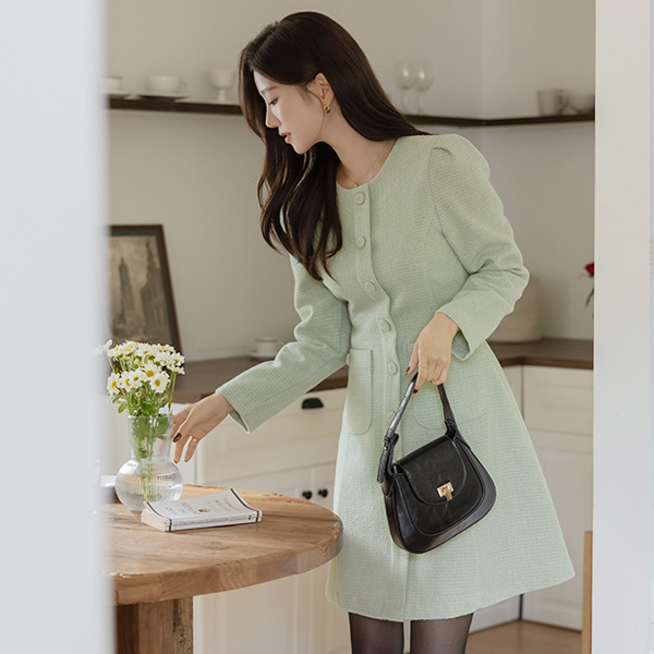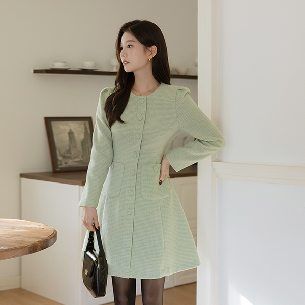 벨라 柔软的 羊毛 粗呢 A字型 连衣裙