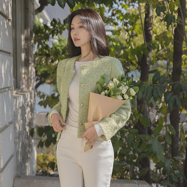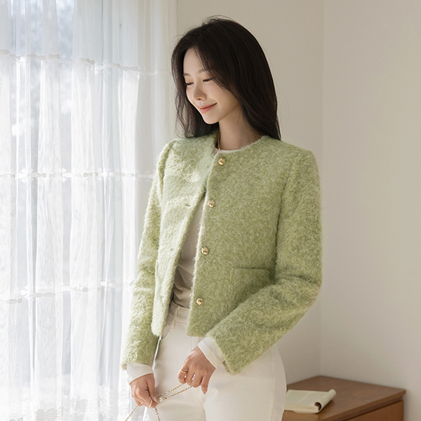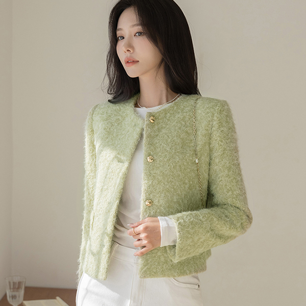 雪花 柔软的 圆领 黄金 扣子 夹克