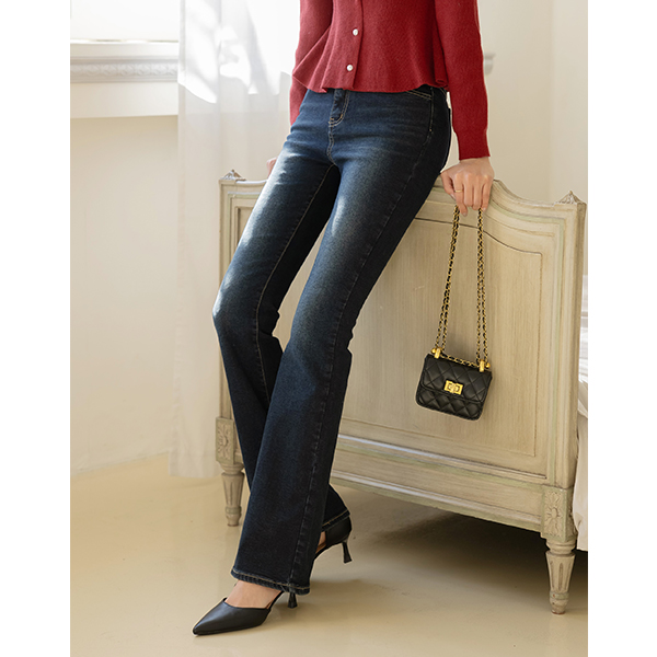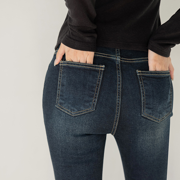폭닥 拉绒 内衬 最高 喇叭 弹力 牛仔色 裤子