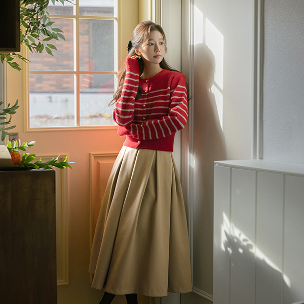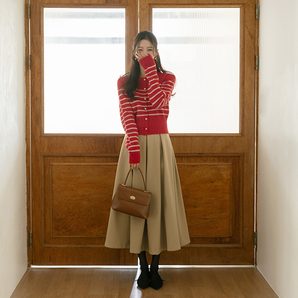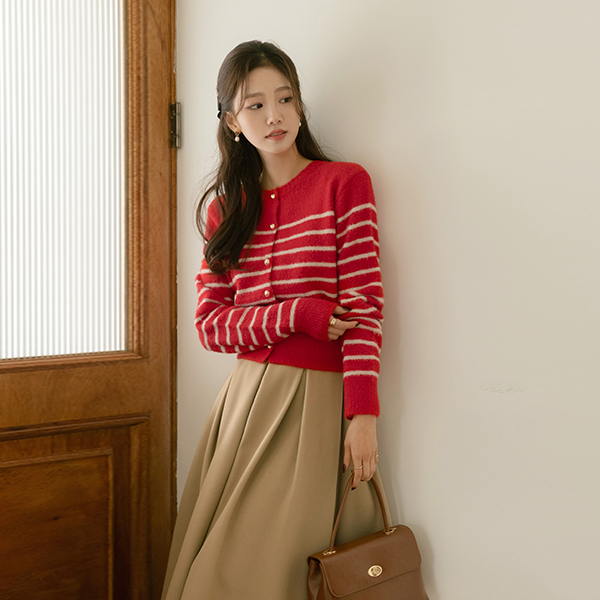Coco 横条纹 黄金 扣子 针织衫 开衫