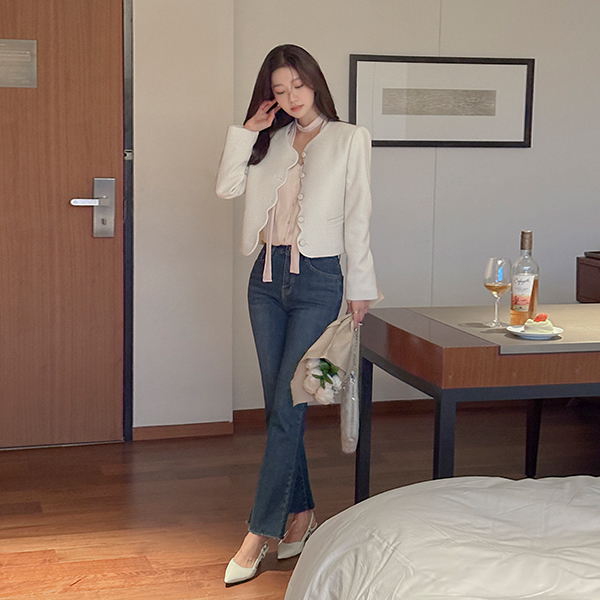 奢华裙 波浪卷 点缀 粗呢 夹克