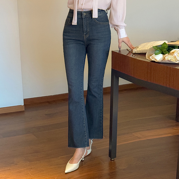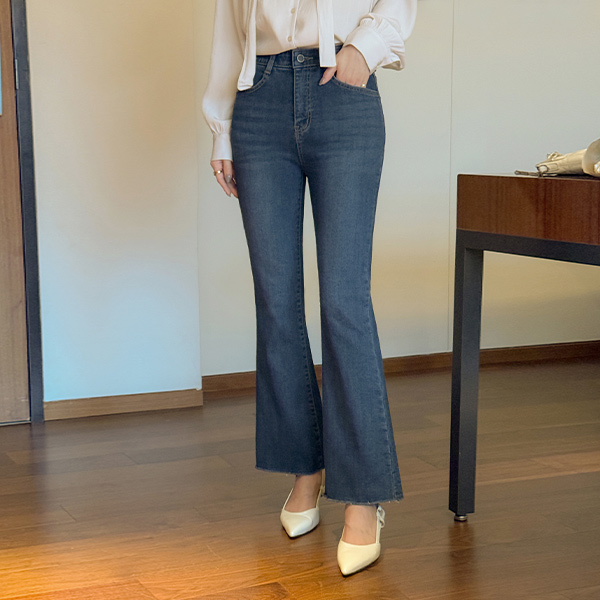 폭닥 拉绒 内衬 细密 喇叭 牛仔色 裤子
