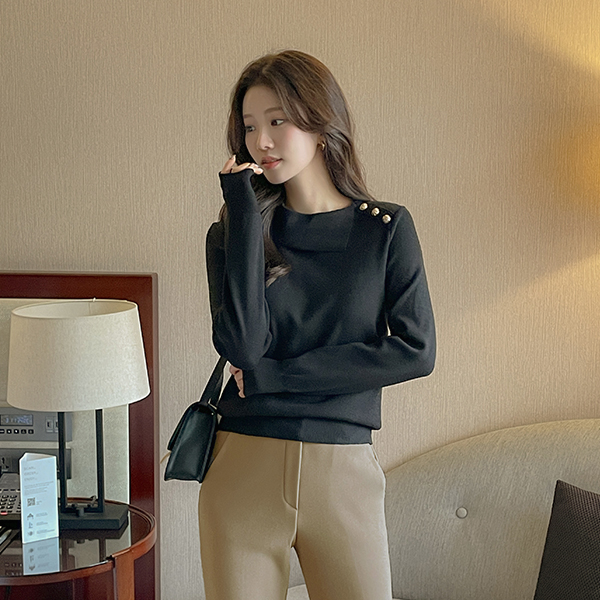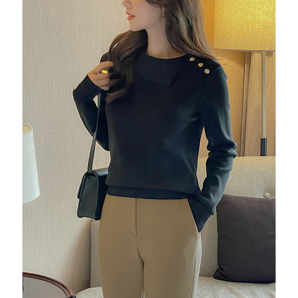 벨라 翻领 扣子 针织衫