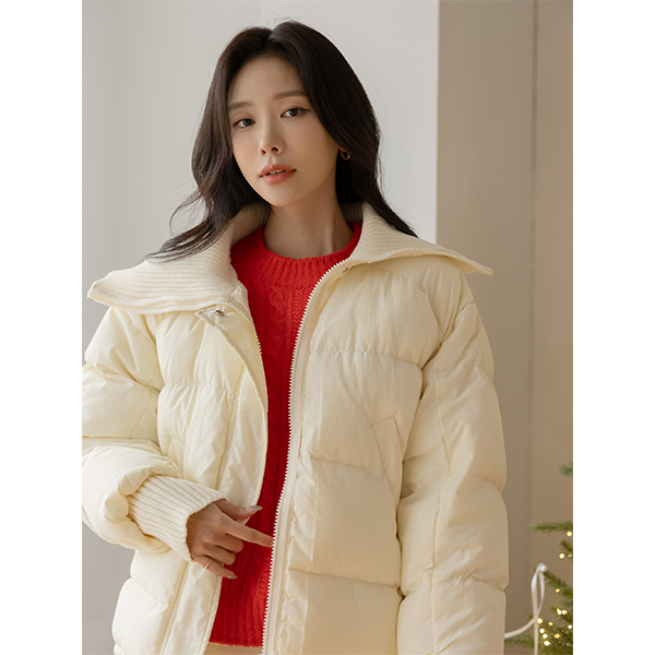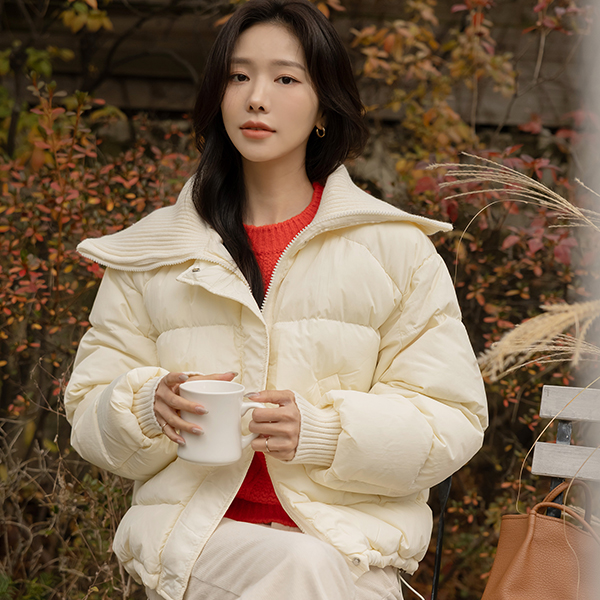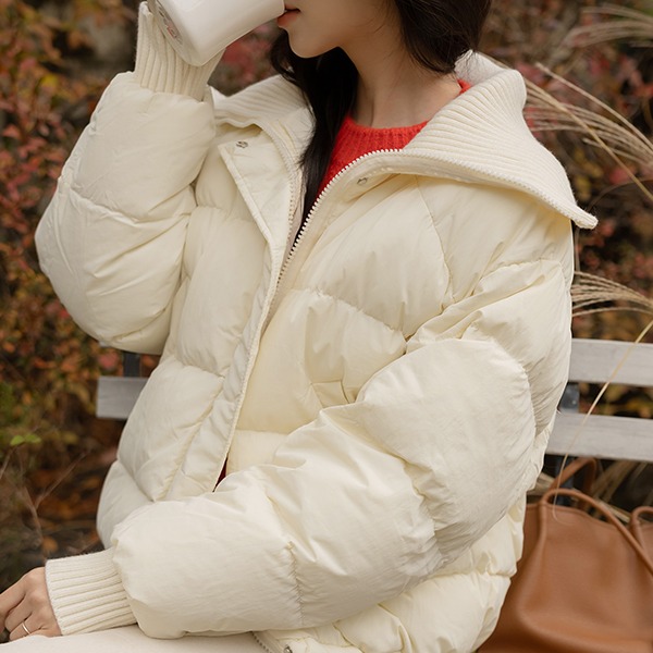 针织衫 翻领 抽绳 羽绒棉 短羽绒服