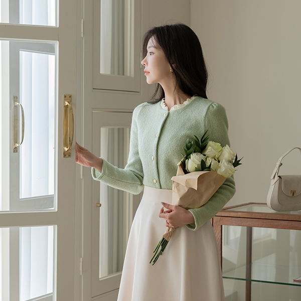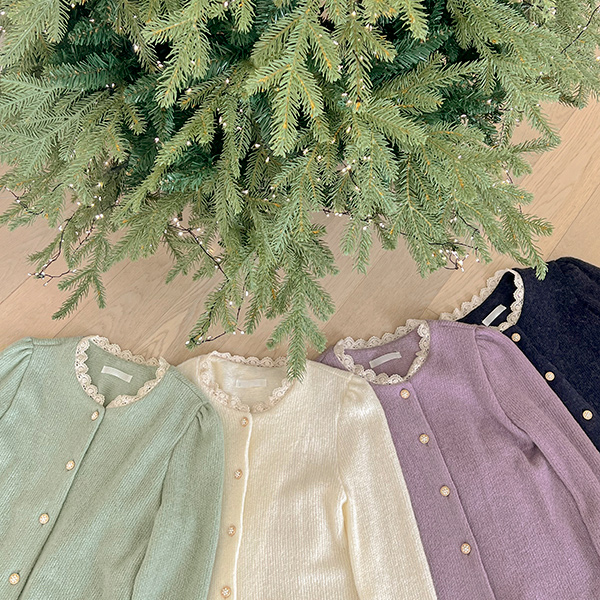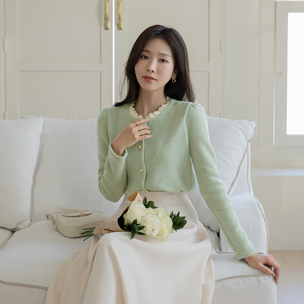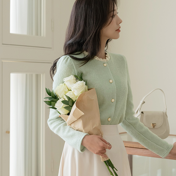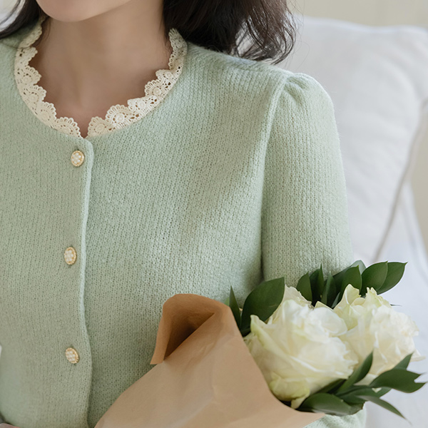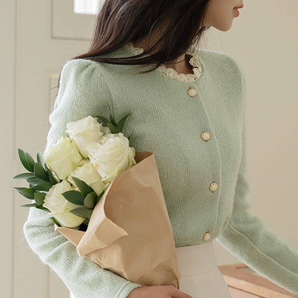 浪漫 蕾丝 圆领 羊毛 针织衫 开衫