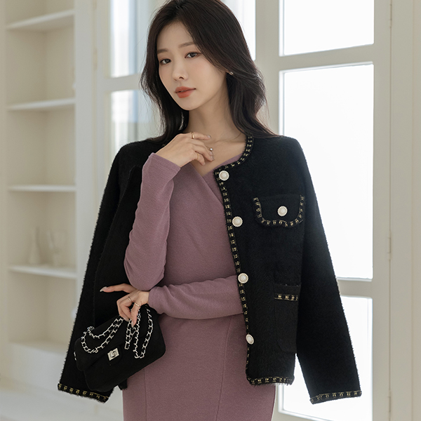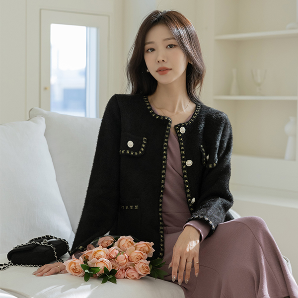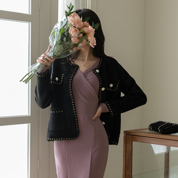 Coco 宝石 扣子 금사 针织衫 开衫