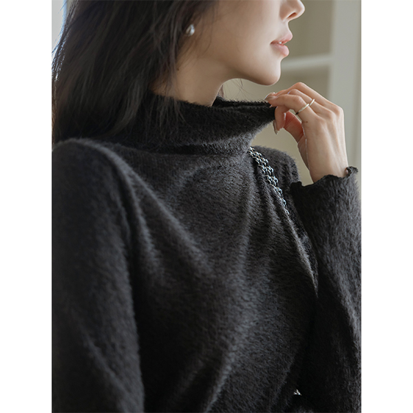 물결 半高领 天使 弹力 T恤衫