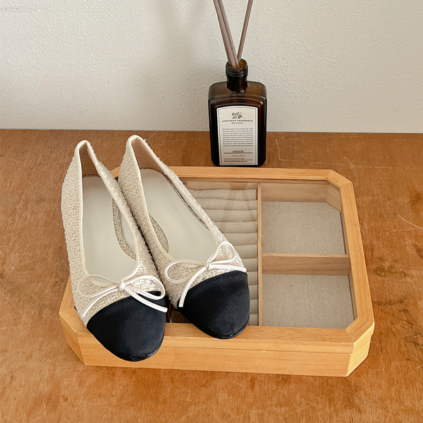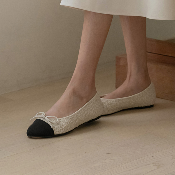 配色 粗呢 蝴蝶结 平底鞋