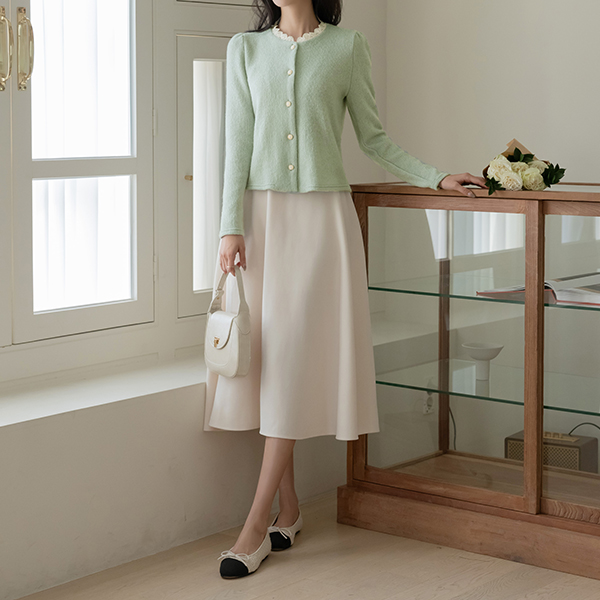 浪漫 蕾丝 圆领 羊毛 针织衫 开衫