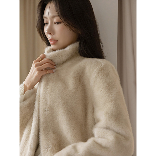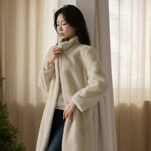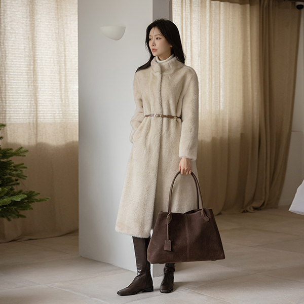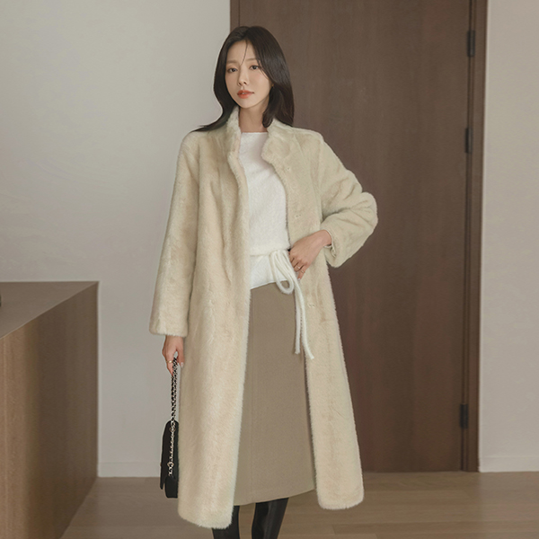 高品质 迷惑 Eco 毛皮草 腰带 长款 大衣