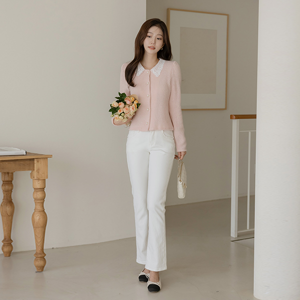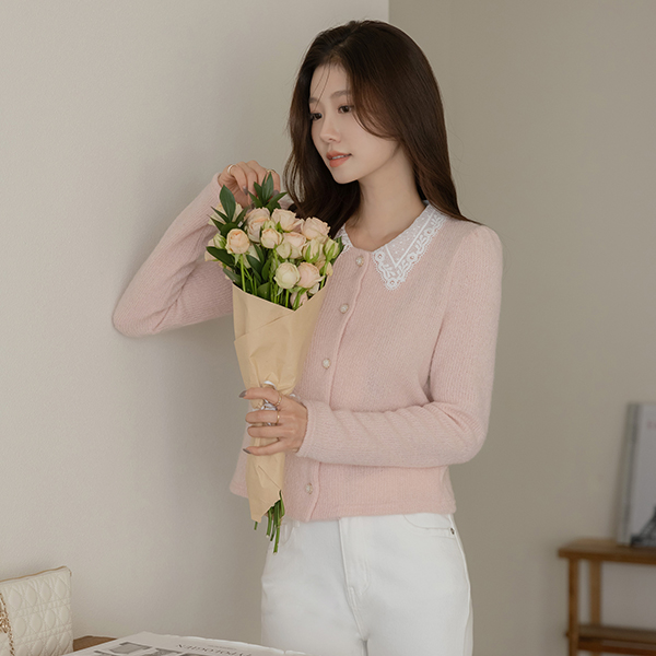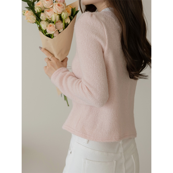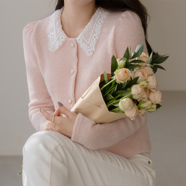玫瑰 蕾丝 领子 羊毛 泡泡袖 针织衫 开衫