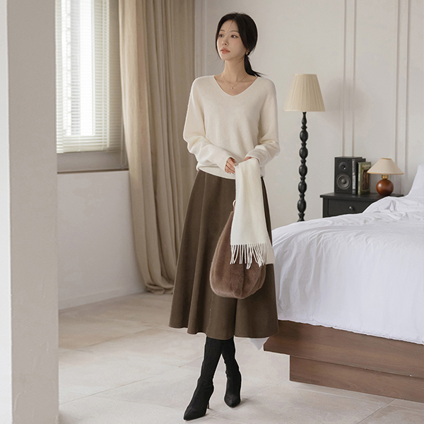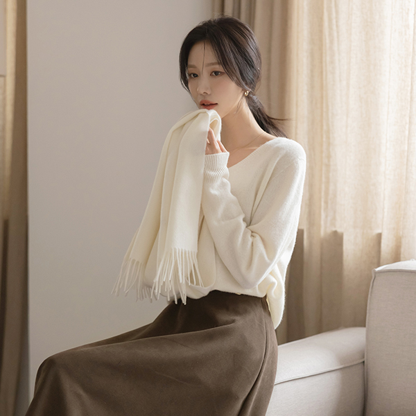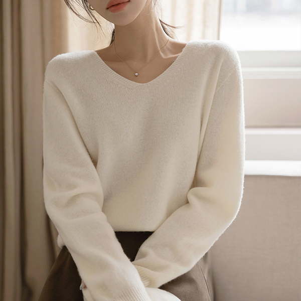 ODE 柔软的 羊毛 100% V字领 针织衫