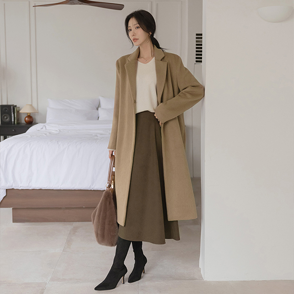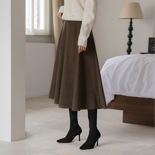 포라인 翻毛皮 后腰松紧带 A字型 裙子