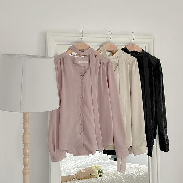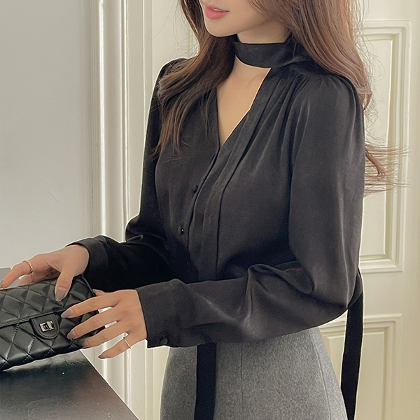 闪亮 绸缎 领带 罩衫