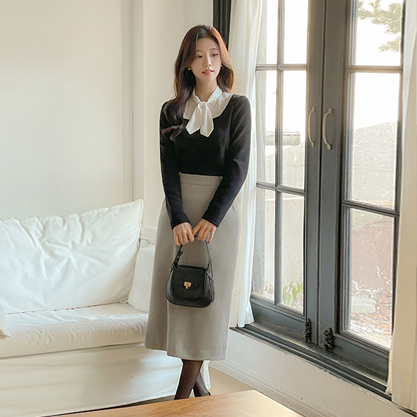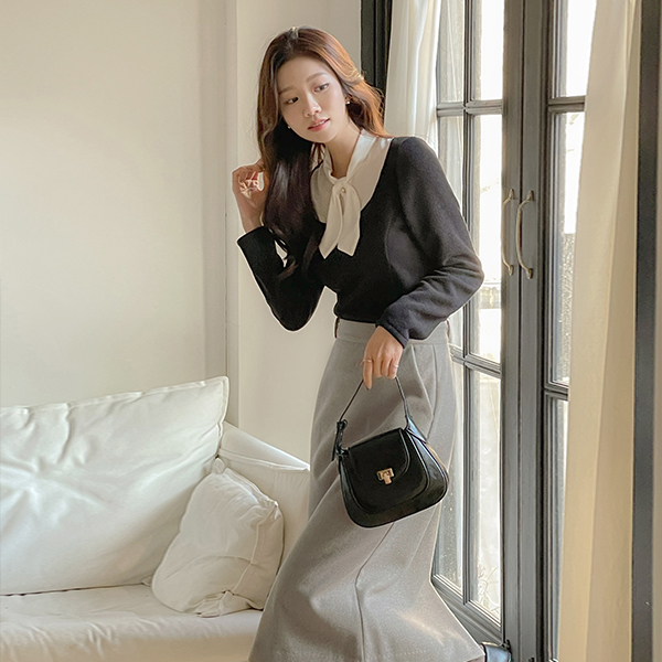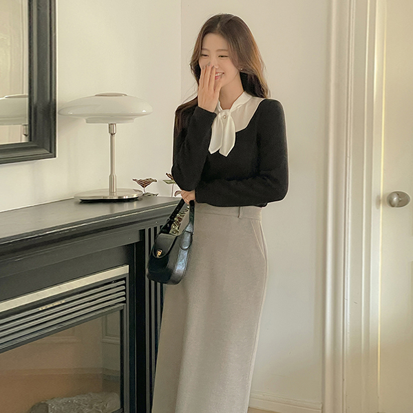 配色 珍珠 领带 分层 针织衫