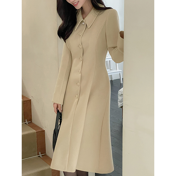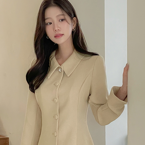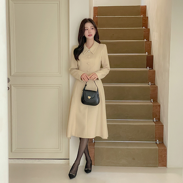 粗呢 袖 开衩 A字型 连衣裙