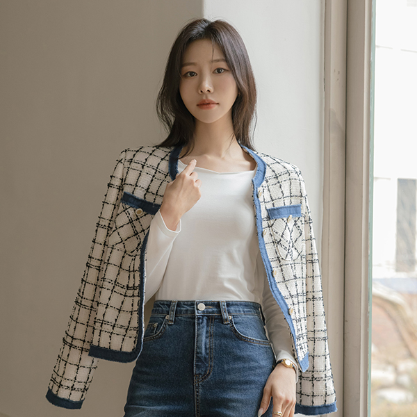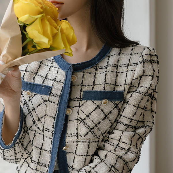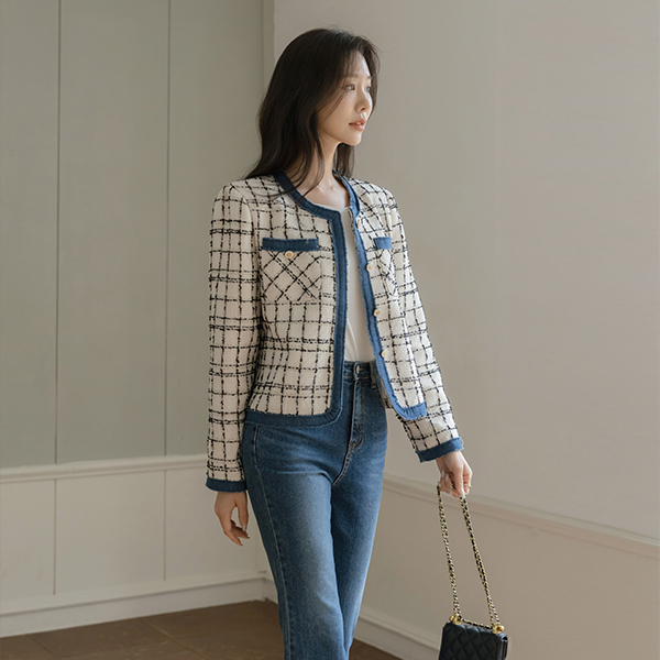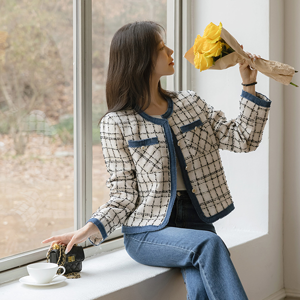 天鹅式 청배색 粗呢 夹克