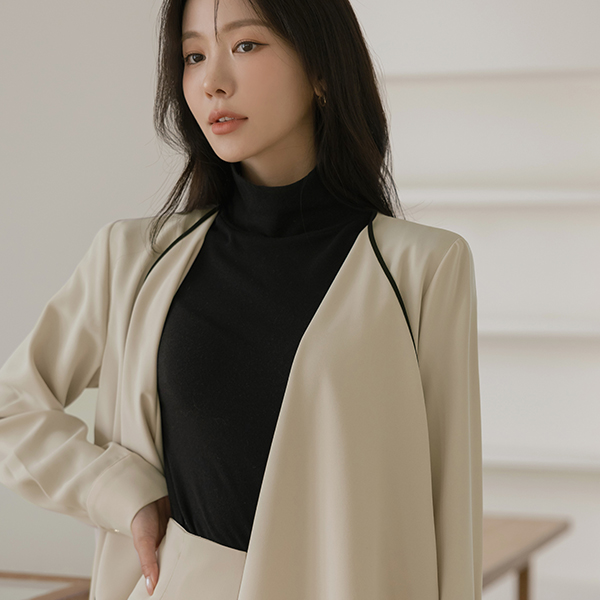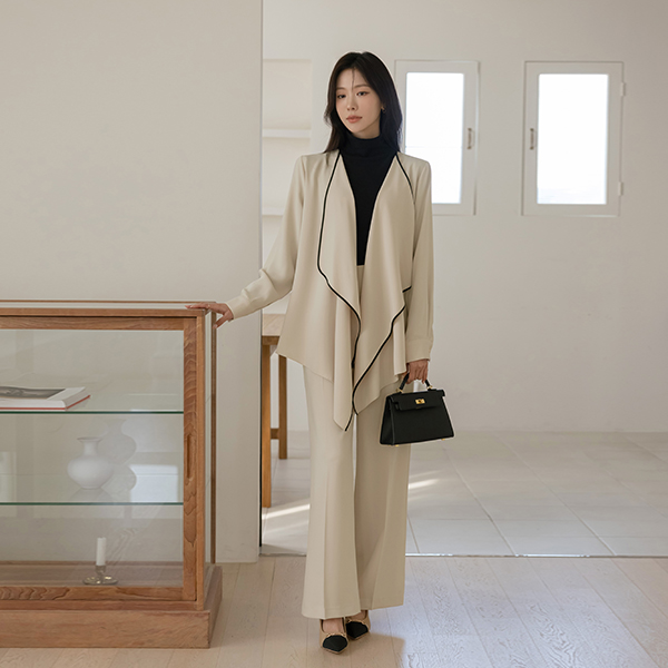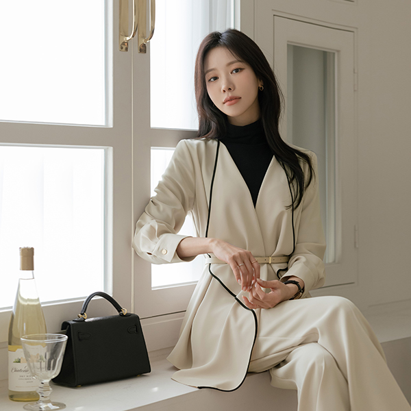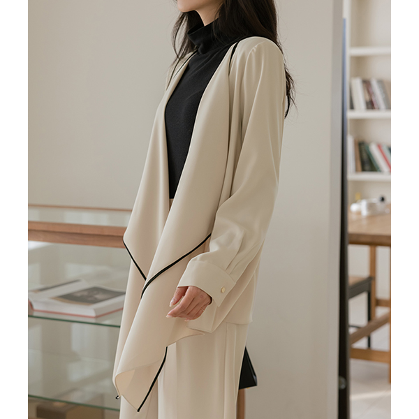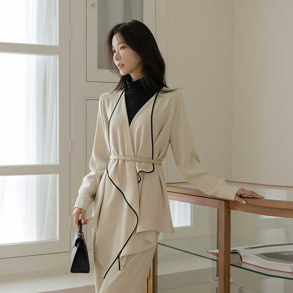 优雅 配色 褶裥 软绵绵软的 Set-up 夹克(+腰带)