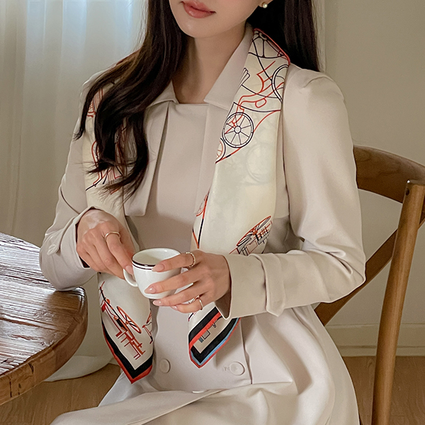 配色 마차 图案 四角 围巾