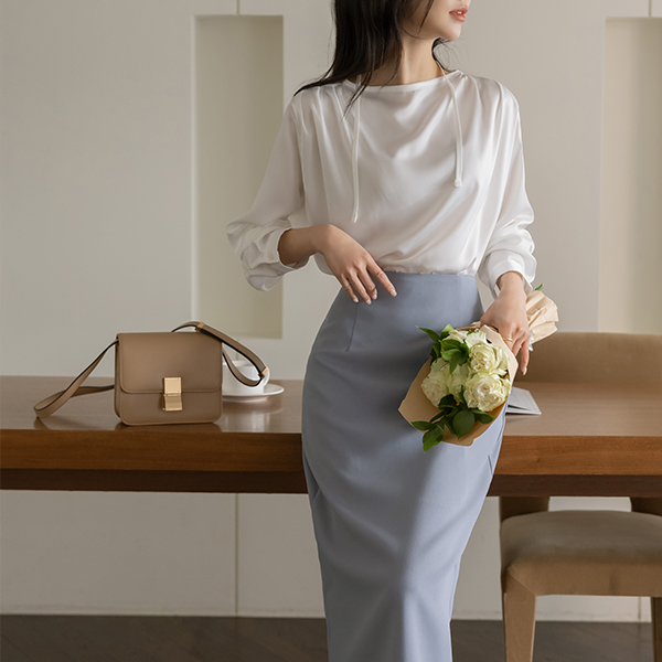 有光泽 褶皱 肩膀 罩衫(+皮条/束带)