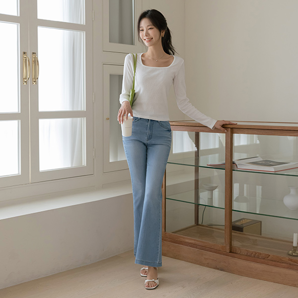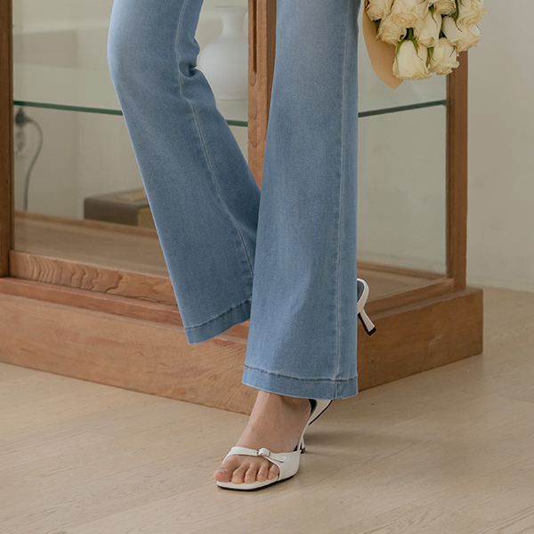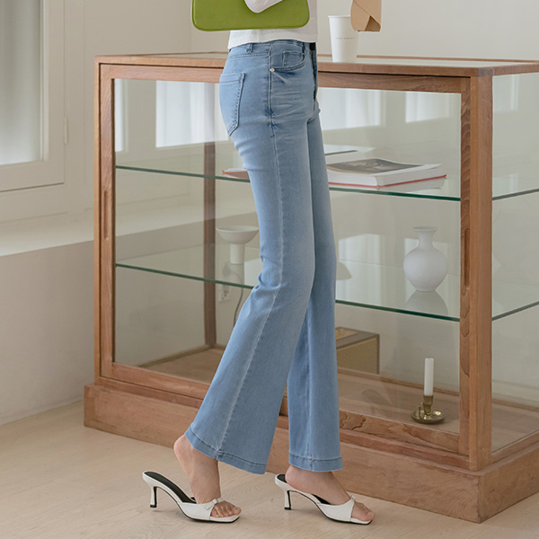 柔丝 麻糬 松紧带 喇叭 牛仔色 裤子