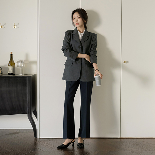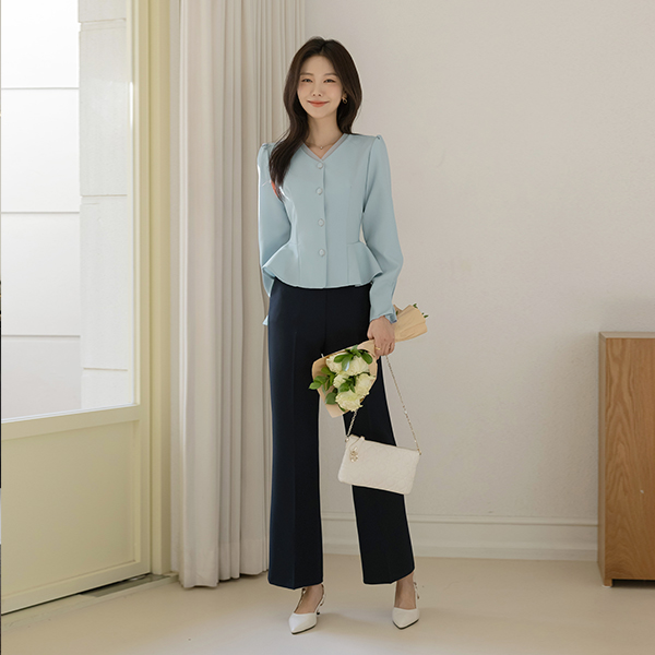 에스핀 带扣 点缀 喇叭 宽松长裤