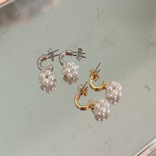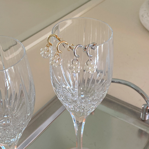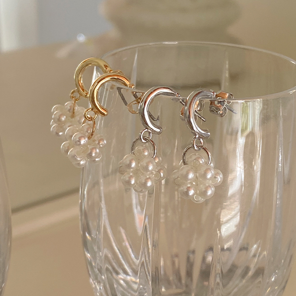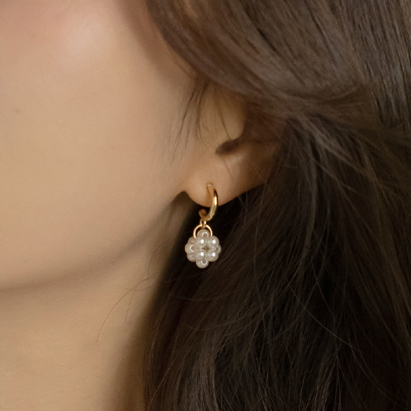 珍珠 泡沫 花纹 吊坠 耳环