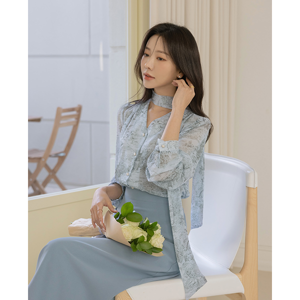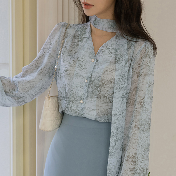 民族风 图案 雪纺 领带 罩衫