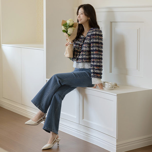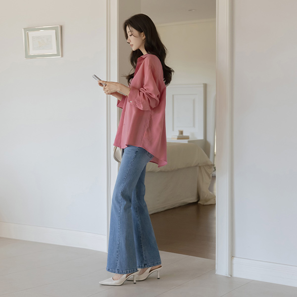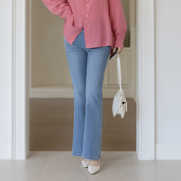 特级 링사 休闲风格 喇叭 牛仔色 裤子