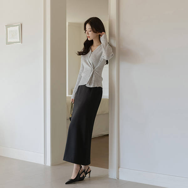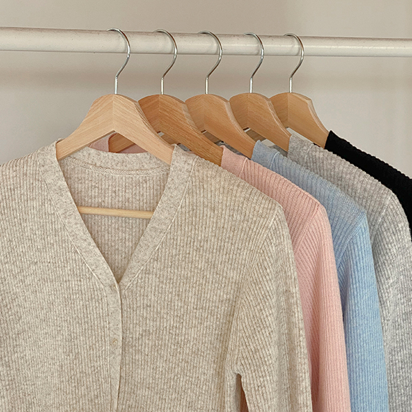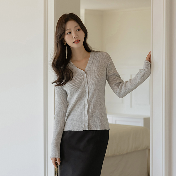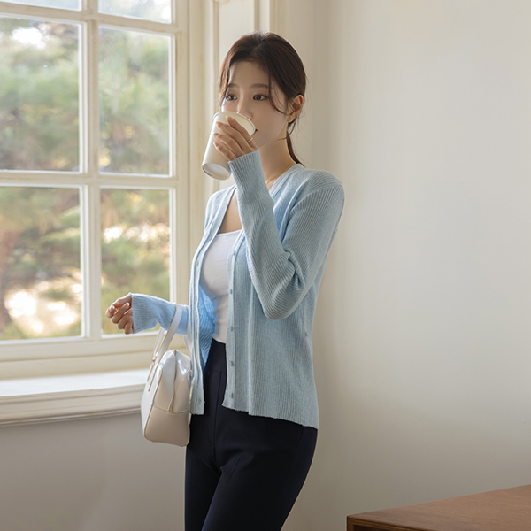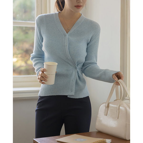 双重 不规则 纽扣 竹节棉 V字领 开衫