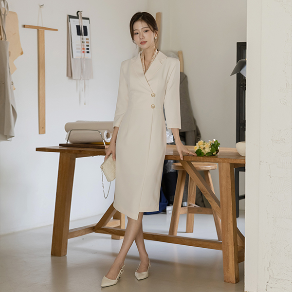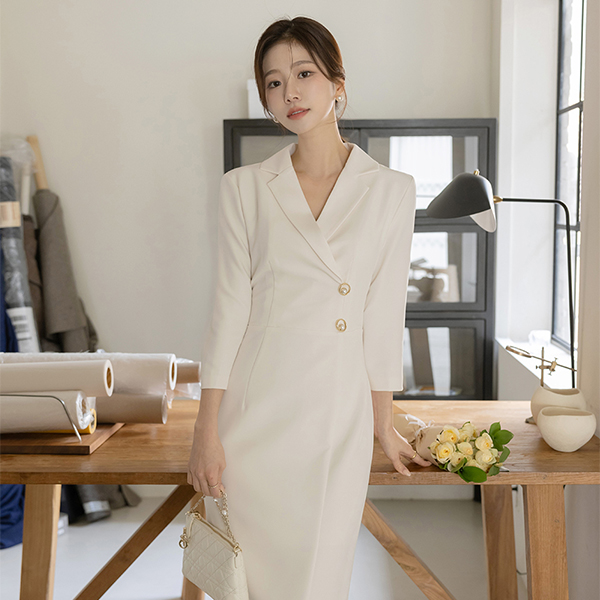 古典 翻领 不规则 H字型 连衣裙