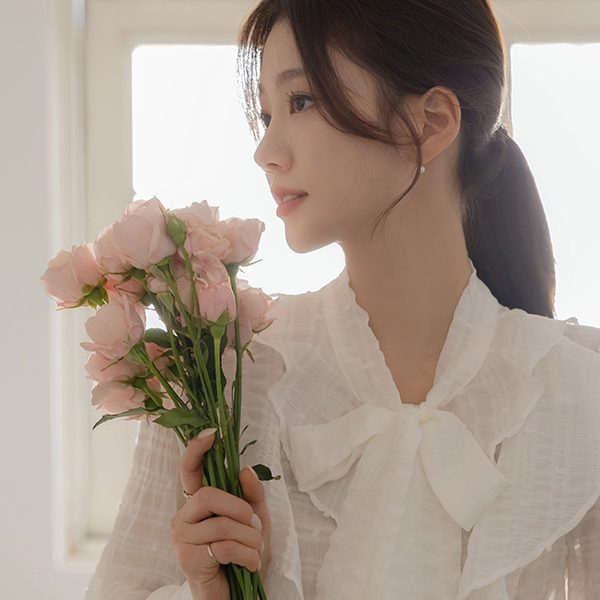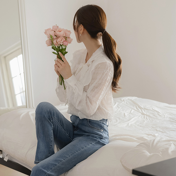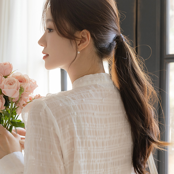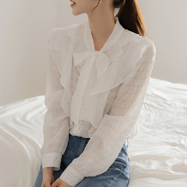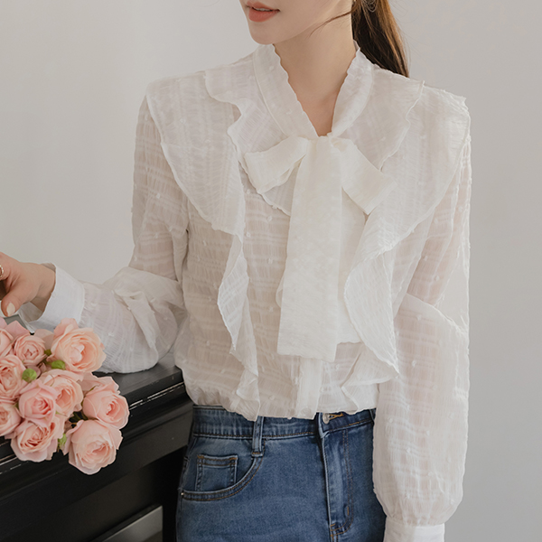 可爱 爆米花 褶裥 领带 罩衫